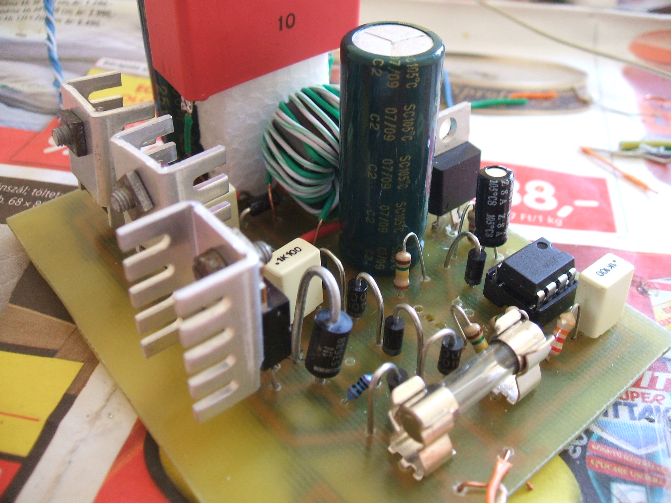 Köszi a válaszokat. Tényleg nem lett a legszebb, de mint írtam ez az első nyákom. Csinálok egy újat másik pákával és ónnal.(Lehet, hogy jobb lett volna ha villogóval kezdek én is.) Amúgy az 555 ös alatt nem rajzoltam a panelra az átkötést.A kicsi hűtő bordát csak átmenetileg raktam rá ha működni fog rakokrá nagyobbat ameddig nem jó minek vegyek rá nagyot.