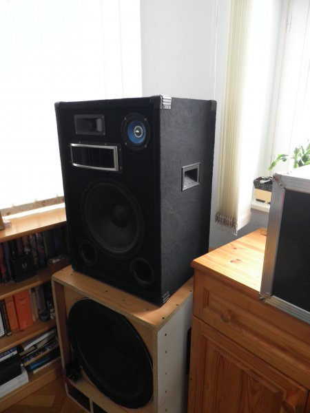 Sziasztok. Ugyan javarészt nem az én munkám, mert egy asztalos barátom csinálta a dobozt, én csak a többi részét. Egy Yamaha C115V-t másoltunk le. Provox 15"-os szélessávú hangszóróval és Storm Audio 1"-os driver-tölcsérrel. Tegnap ki lett próbálva szabadtéren kisebb zenekarokkal...hatalmasat szól.