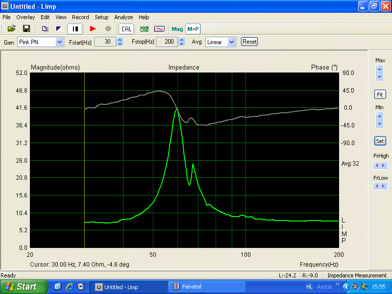 Nos, készen van nagyjából a doboz. Mértem impedacia menetet az ARTA Limp-jével, erősítő nélkül, csak a hangkártyával.