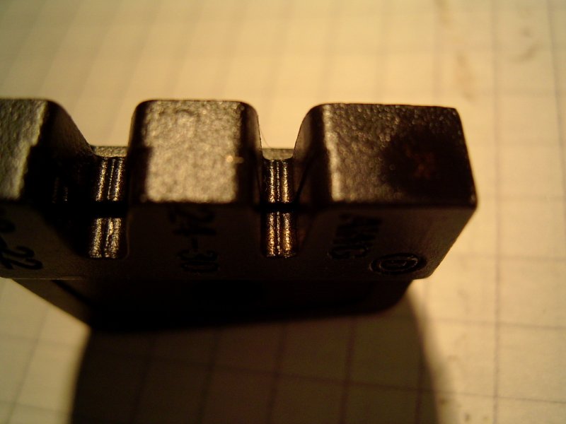 Szeretném megnézni ennek a fogónak a két "pofarészét" alaposabban. Annyira kéne látnom, hogy tudjak készíteni egy hasonlóan működő "préselőeszközt", ami alkalmas lesz az én néhány nyákcsatlakozóm legyártására. Megpróbáltam sima fogóval megoldani, ami nem lehetetlen, de elég körülményes viszonylag egyforma szereléseket készíteni. Kipróbáltam még a forrasztást is, de ott is vannak buktatók.