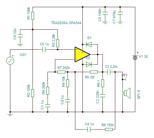 A másik kérdésem pedig az, hogy van 1-1 dióda a tranzisztorok kollektora, és emittere között. Azt tudom, hogy miért van ott, és nagyon érdekes, hogy a TDA2030 gyári kapcsolásában is ott van. Viszont vannak olyan erősítő kapcsolások (szintén gyáriak, pl.: a TDA2050) , ahol az nincs ott.