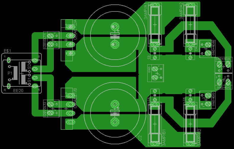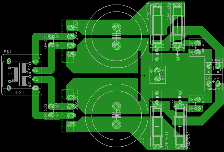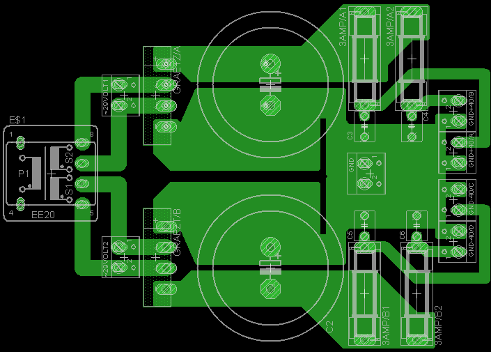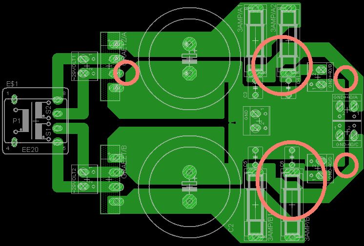 Bocs, hogy bele.... A váltó fesz. oldalán minek a két csati ha ott a trafó, másik két csatinak ( c2,c3) a szerelhetőségére is oda figyelhetsz.