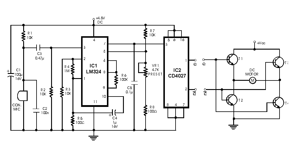 Olyan kapcsolási rajzot keresek, amelyikkel egy motor forgási iránya váltakozna a zene ütemére.(pl a fényeffektekben)