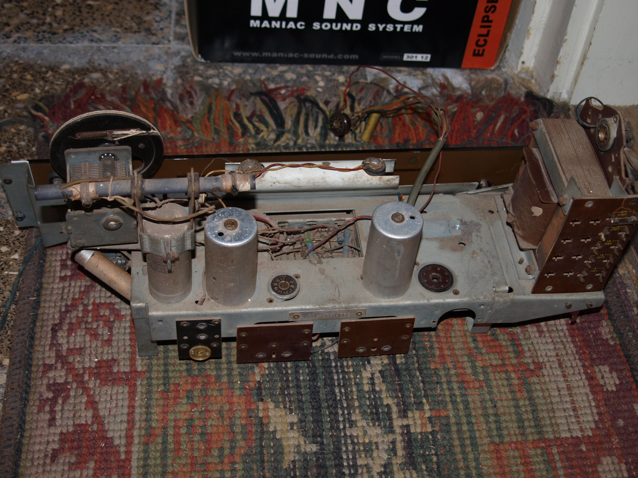 Leellenőriztem még egyszer a frekvenciákat, végülis sikerült generátorral beállítani a maximumokat, varázsszem is egyformán jelez, viszont egy olyan dolgot tapasztaltam, hogy ha kicsit félrehangolom a rádiót, akkor a moduláció hangosabbnak tűnik a rövidebb hullámhosszokon (a vétel viszont gyengül kicsit), ez lehet az AGC miatt, vagy valami egyéb hiba, vagy mégsem jó a behangolás. Műsorvételnél még sajnos nem olyan érzékeny, mint a másik 946-osom, lehet az ech-k gyengék (bár jó pár kombinációt kipróbáltam és egyszer sem javult a vétel). A szívókört lekötöttem a hangolásnál, majd vissza mert lekötve megint csak gyengébb volt a vétel, talán ez jól be van hangolva. Még egy dolog van amit az előzőekben nem említettem, hogy az EM80 villog, erősebb hangra összébhúzódik az ernyőkép, a hidegítő kondenzátort már kicseréltem vadi új stiroflexre. Csatolok pár képet, azóta már van mutató, fel van húrozva, be van kötve a kimenő, fenn van a skálaüveg stb...