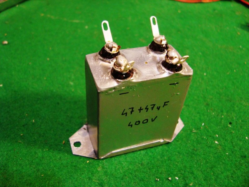 A kondi gyártáshoz jó az orosz kocka, csak jól ki kell pucolni. Én azért csináltam dobozt, mert nem volt akkora kész kondezátorom, aminek a dobozába be fért volna a két elkó. Kell majd egy katód elkó is, azt valószínű én is egy orosz kondi kész dobozába fogom rakni.