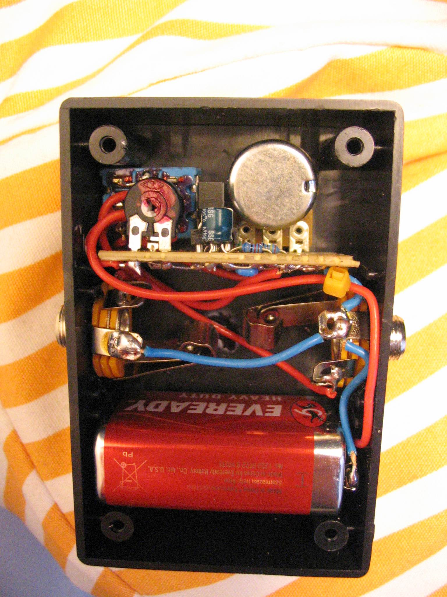 A kapcsi a true bypass mellett a telepet is kapcsolja, így hát az elem be van forrasztva, szerintem örökélet. (ma reggel elbicajoztam lomexba csomagomért, lett rakat j fet)