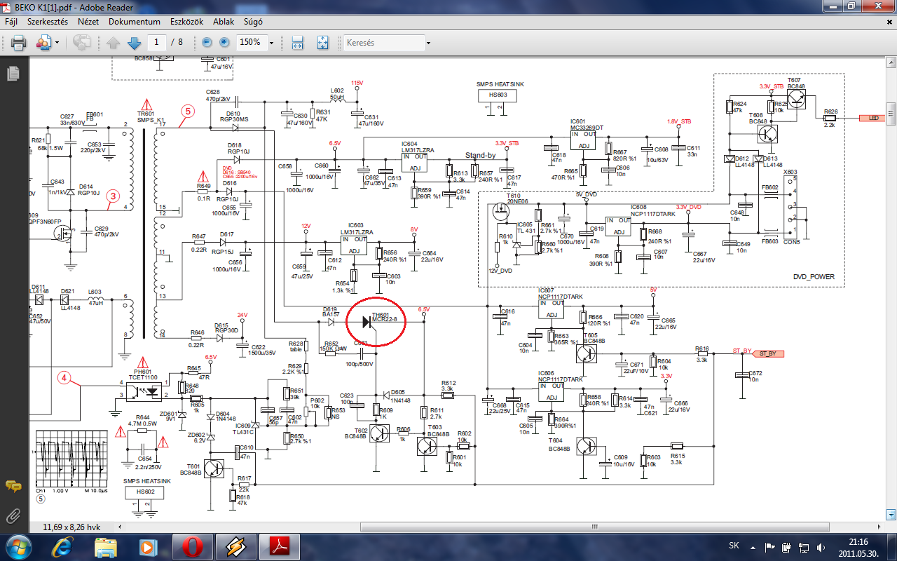Szeretném kérni a segítségeteket. Nem tudja valaki, hogy a csatolt képen megjelolt tirisztornak milyen szerepe van a TV-ben? Mert ha be van forrasztva, a táp idoszakosan sípol és ki-be kapcsolgatja magát. Ha ki van forrasztva a tirisztor, simán elindul a TV, minden megy rajta. Koszi