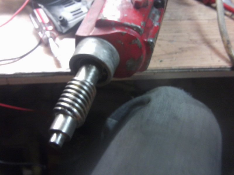Ez egy 42V-os EVIG fúrógép ház, amiből huzalelőtolót készítettek anno. A kétféle fordulatszám a kihajtási fordulatszámot jelöli a fogaskerék áttételezés után. A kétféle fordulat közül a hajtómű oldalán kivezetett váltókar elforgatásával lehetett választani. Az optikai visszacsatolás amiatt kellett,mert a motor soros univerzális, és visszacsatolás nélkül eléggé instabil a fordulatszám tartása. A fordulatszám visszacsatoló jelet azt hiszem egy 709-es IC dolgozta fel, de erre nem mernék megesküdni, hiszen kb. 20-22 éve láttam ilyen előtolót. Nem sok készülhetett belőle.