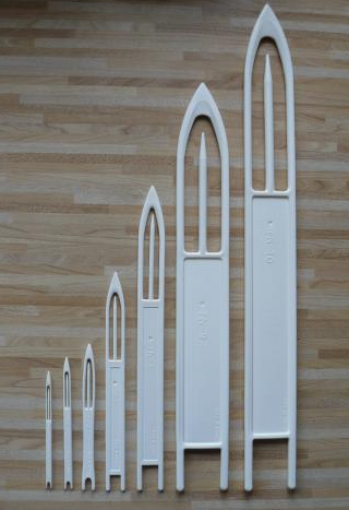 Ez csak a kivitelezéséhez segédeszköz. Halászháló kötő orsó/tű. Váltott irányban felcsévélve rá a huzalt, lehet átfűzögetni a gyűrűn. Gyerekkoromban, alsóban az egyik rokonomtól megtanultam 2 féle módon hálót és halszákot kötni...A tű mérete határozta meg a háló szemnagyságát. A tűt bodzafából farigcsáltam magamnak.