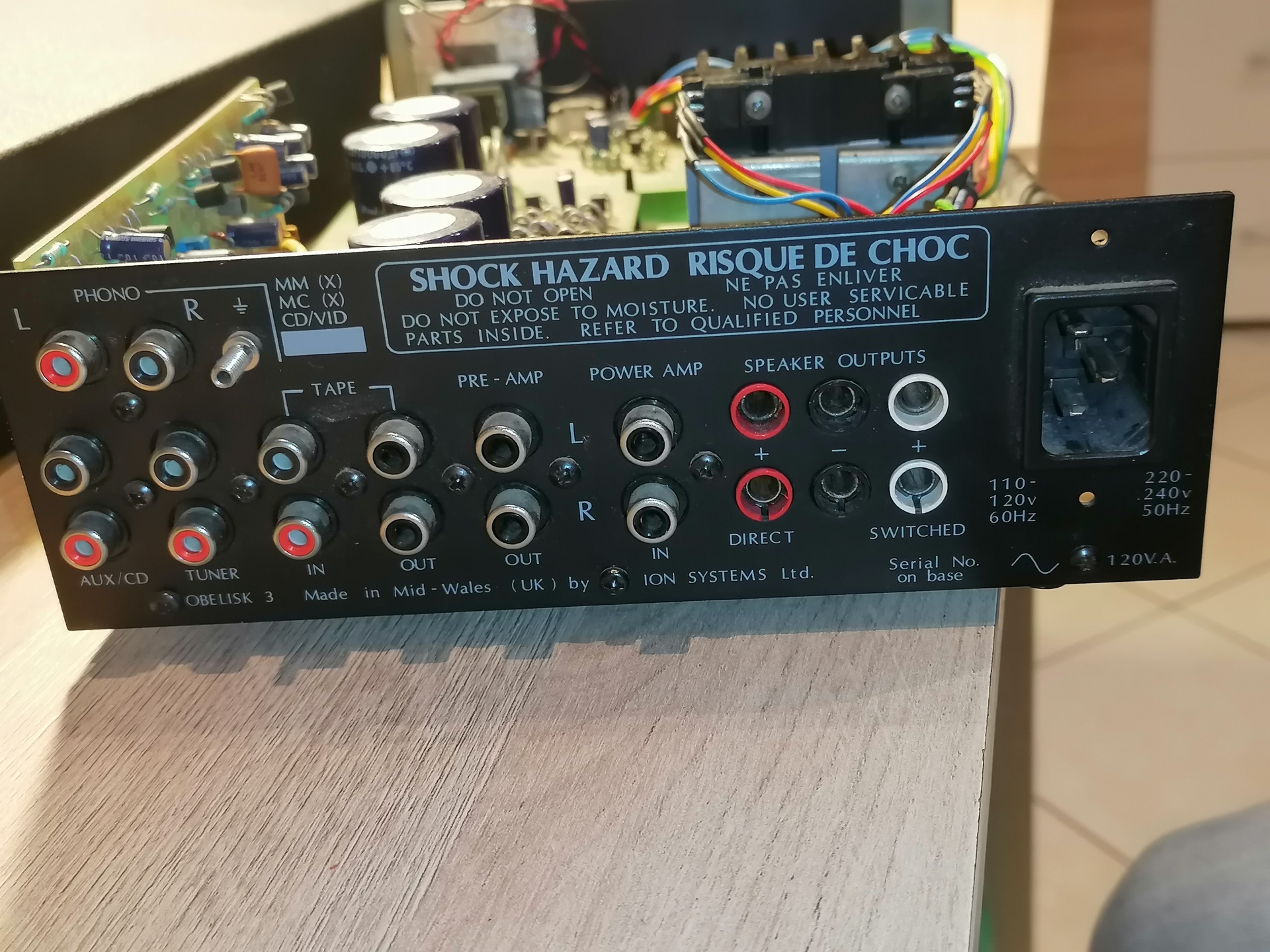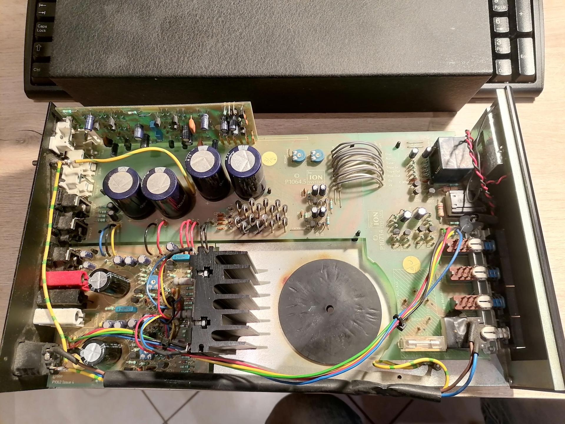 Burkolatot leszedve az asztalon bekapcsoltam bemenet és hangfalak nélkül. Tökéletesen hallható a trafóból érkező szikrák szinfóniája a bekapcsolást követő pár percig, majd ritkul és megszűnik. gondolom, ahogy melegszik....
