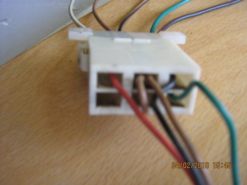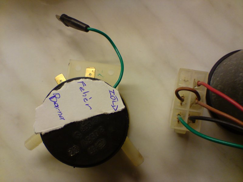 A mellékelt kép szerint az enyém felülről lefelé Barna -test Piros ( jeladóhoz) a kapocs után a fehér vezetéken) Fekete +12 V Zöld