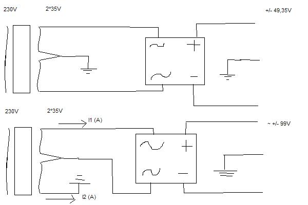 De amúgy nem,de most már tudok egyszeres tápból kétszerets általad Köszönöm!!!nah amit én mondok az ez,amit paint-ben rajzoltam: Nah és az a kérdés,hogy az I1 és I2 mennyire különbözik...mert nem akarom a két tekercset egymáshoz képest "elterhelni"