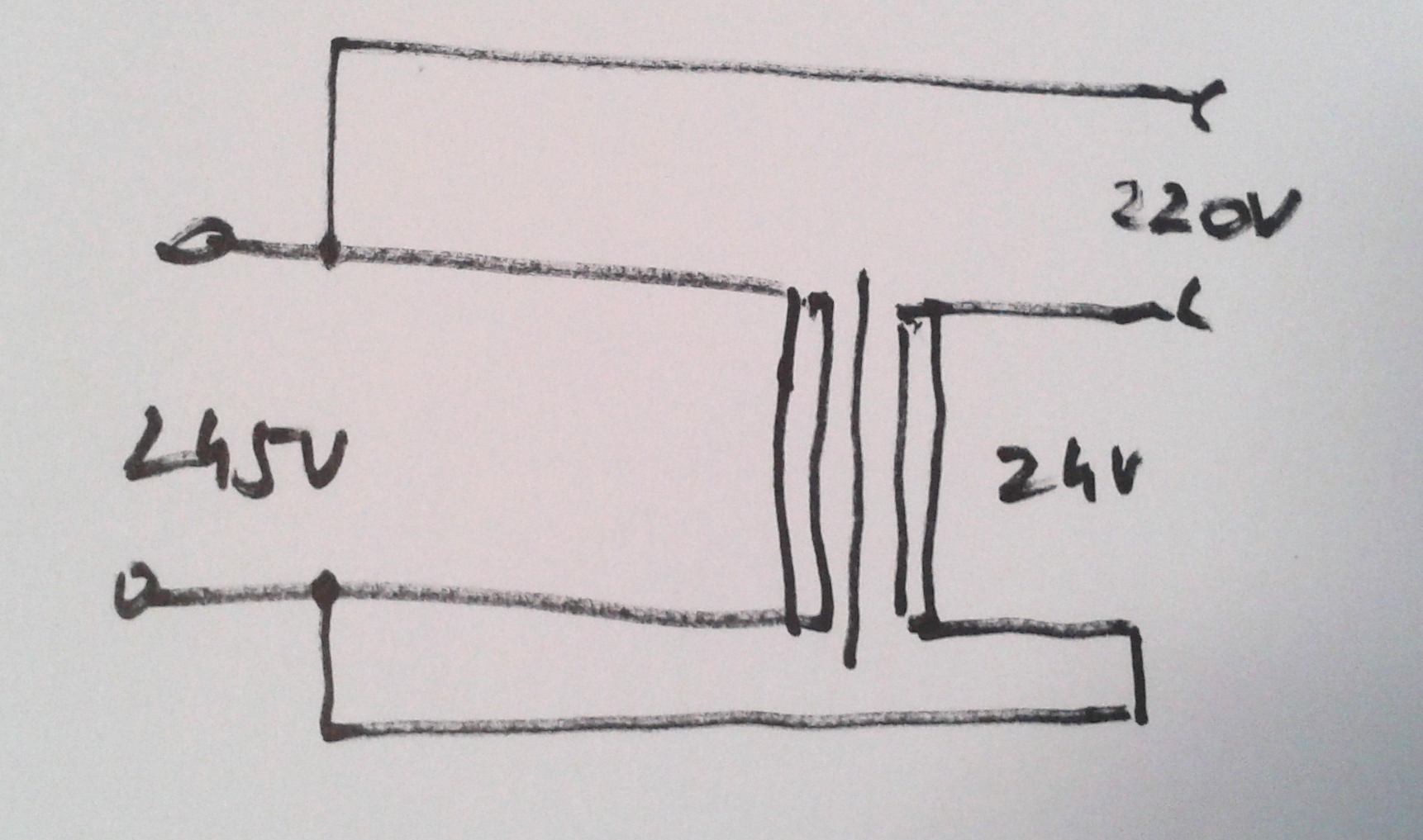 A rajzon a mostani ajánlat és a régi is látható. Ha a trafó 230V primer feszültségre van méretezve, megfelelő szekunder feszültségű trafóval mindkét esettel működtethető. A teljesítmény igénybevétel megfelel nagyjából százalékosan a betáplált és a kivett - levont- feszültség arányának, mint fentebb írva vagyon... Néhány volt eltérés lehet a fogyasztástól, transzformátor terhelhetőségétől függően, de nincs jelentősége.