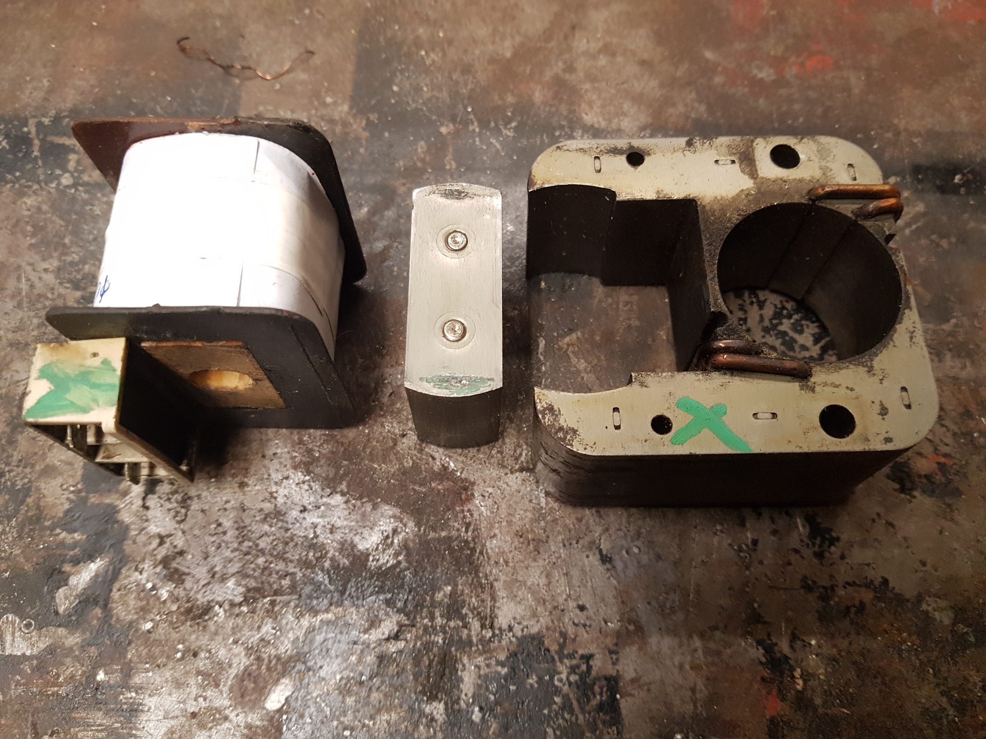 Nem transzformátor, de tekercs és vasmag van benne. Egy gyermekkori barátom olajégőjében lévő ventilátor motorjának tekercséről van szó, ami szénné égett.