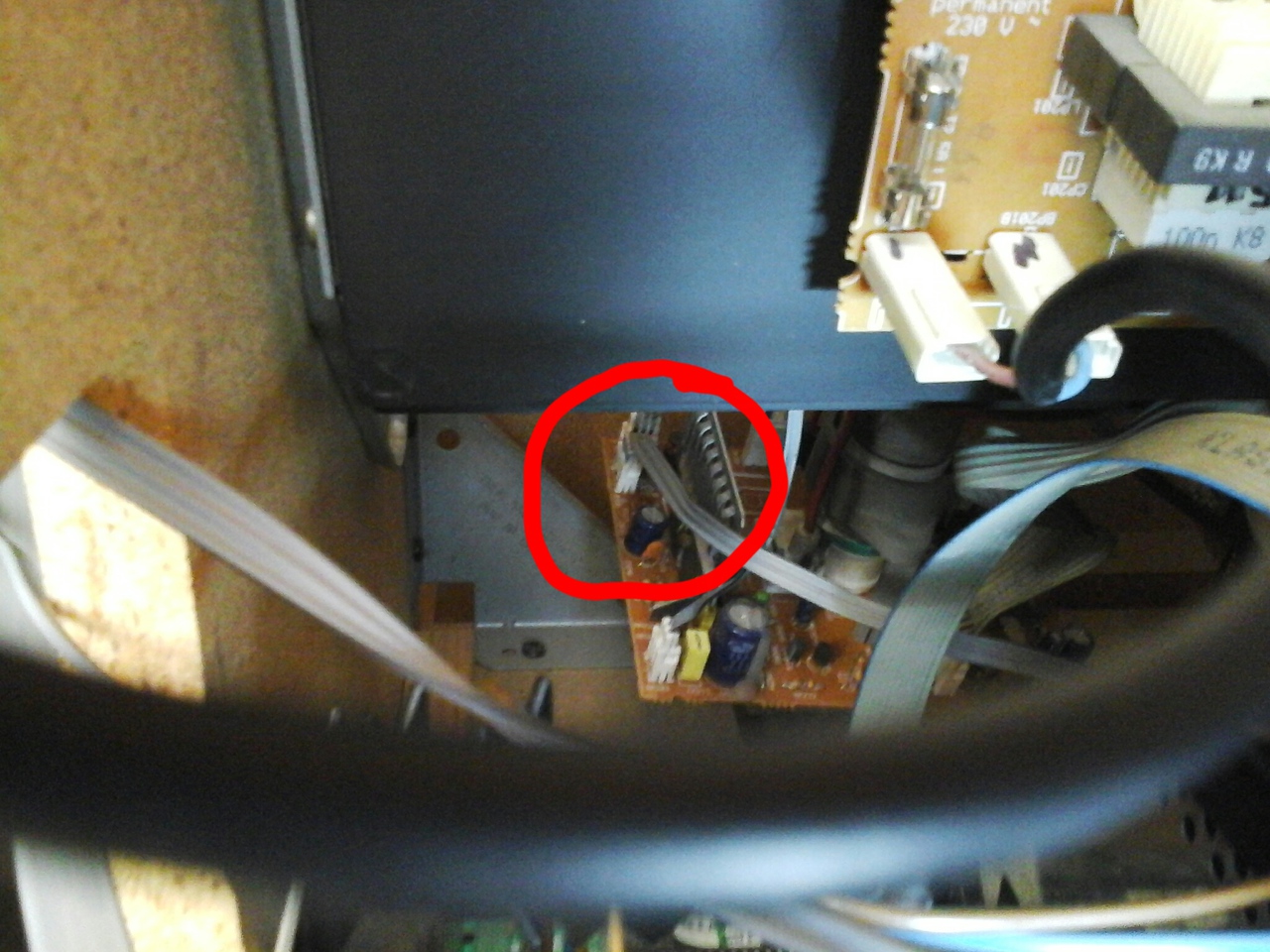 Igaz látom, hogy van egy másik is kicsit lejjebb sípoltasd meg a kettőt egymáshoz képest kapcsolatban vannak-e, és nézd meg azt is, hogy GND csatlakozok-e. Ha igen akkor valószínű, hogy oda tartozik, de ez csak elmélet...