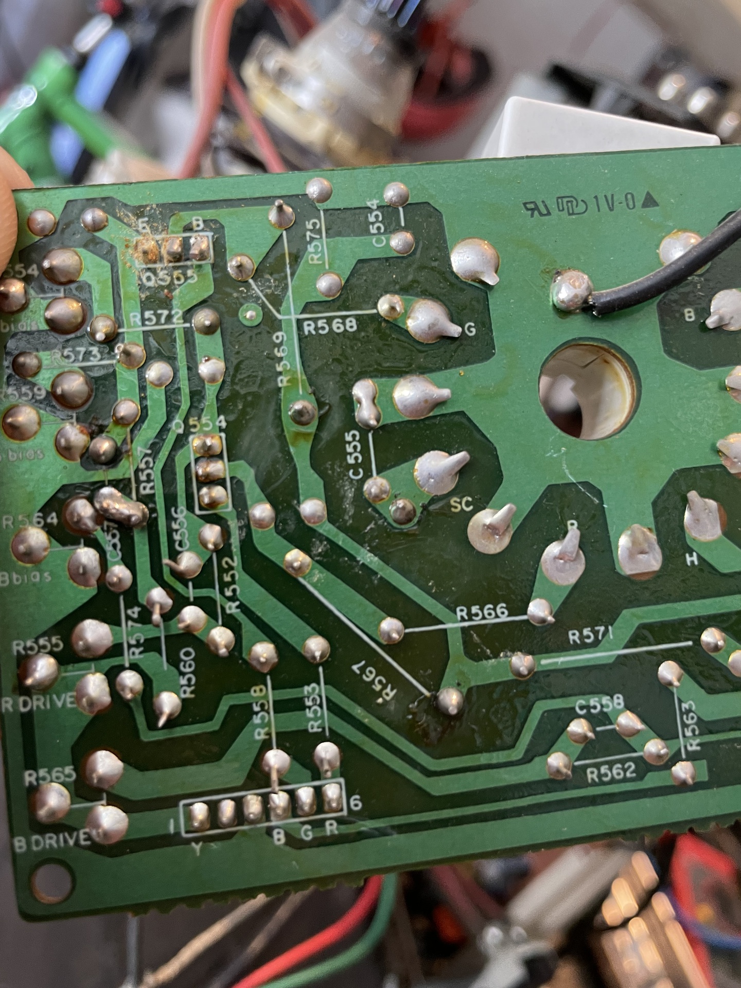 Azonban nem, vagy nem csak a piros csatornàval volt probléma hanem szerintem a zöld tranzisztor volt úgy gondolom hogy az időtől és a fluxtol zárlatos. Ezért a képen nem nagyon látszott piros szín hanem minden erős zöld árnyalatú volt. Ujraforrasztottam mindhárom tranzisztort, és izopropillal és egy fogkefével letakarítottam az elektronikát. Szerintme most rendben van