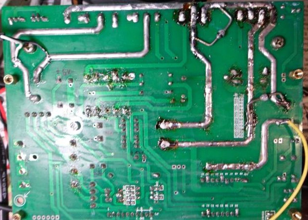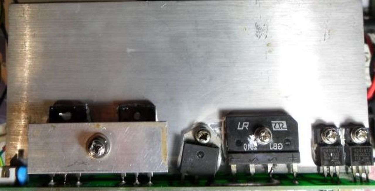 Kösz, hogy segíteni próbáltál. Az igazi nagy baj az, hogy tranzisztorokkal még a trafó nélkül is, üresen is sok áramot vesz fel. Átalakítottam úgy, hogy a PC-táp rajzon van. 50 ma-rel kevesebb lett az áram, de még mindig sok. A vezérléssel lehet valami gond, lehet, hogy a végfok túl sokat kap (vagy keveset?) A trafó primer tekercsén szép 12V-os négyszögjel van, a bázisokon ez már torzul, csúcsosodik, a kimenő jel meg a képen látható. Kivettem a 2,2 µF elkókat, hátha kevesebbel nem fűt annyira. Amikor bekapcsoltam, akkorát durrant, kiverte még a ház biztosítékát is. A vezérlő rész abban a fekete dobozban van de ott van mellette a két kék színű helipot a frekvencia állításra, szerintem egyszerű multivibrátor lehet benne. Lehet, hogy az egész végfokot átalakítom törpe feszültségűre. Csak a kimenő trafót kell átttekerni 1:10-re legalább. 24 Voltról 2 Amperrel gyönyörűen megvan az 50 Watt, és nem füstöl, nem életveszélyes, amit máskor laptop töltővel építettem, soha nincs panasz. Ezek a kínaiak nem tudom, minek bonyolították ezt ennyire túl, 230 V betáp, triakos szabályzás, minden rész egységnek külön hálózati trafó, 1 a generátornak, a triakos vezérlésnek külön, a hűtő ventilátoroknak, és az érintőképernyős kapcsoló egységnek külön tápja van.