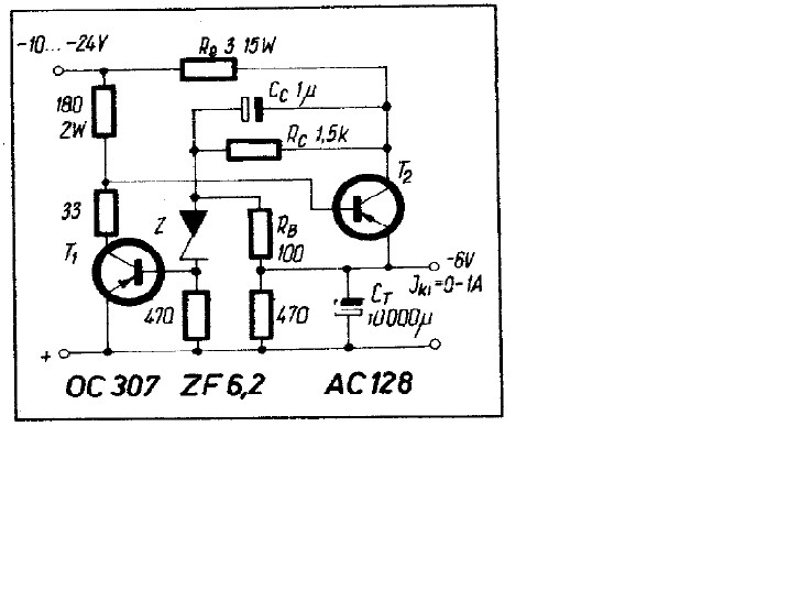 Igen igazad van! Azért írtam, hogy stabilizálatlan mert úgy gondoltam, hogy ezt egyszerűbb lesz megoldani mint a stabilizáltat. Első lépésben egy stabilizálatlan táp megépítésével kezdtem volna. Végülis amire Én gondoltam azt megtaláltam egy régi Rádiótechnika Évkönyben (1969). EWB5-tel megpróbáltam leszimulálni de mivel csak most ismerkedek a programmal, nem nagyon ment. A csatolt áramkörben a kapcsolóelemet FET-re cserélve és még néhány változtatással talán megfelelően működne széles bemeneti feszültséghatárok között is. (Talán a 180Ohm/2W-os ellenállás helyére is célszerű lenne egy FET-et berakni a magasabb bemenő feszültség esetén fellépő hőveszteség miatt).