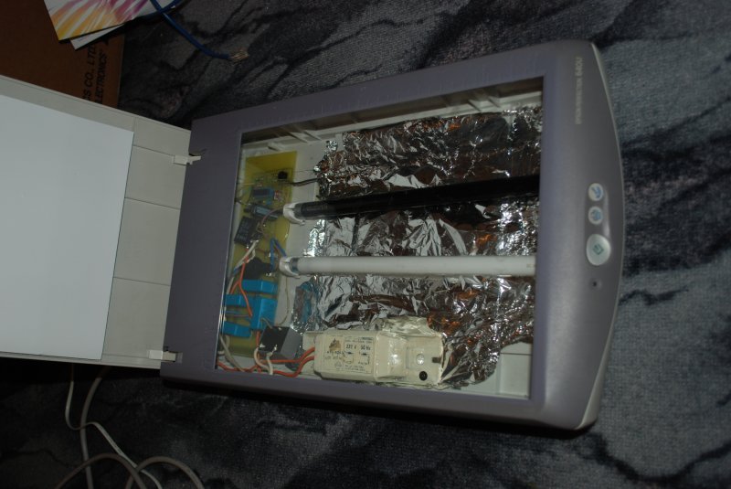 Elkészült a levilágítóm. Az egyik cső nem UV, csak kipróbálásként raktam bele. A másik valószínű megsérült szállítás közben és még nem tudtam szerezni helyette... Üdv