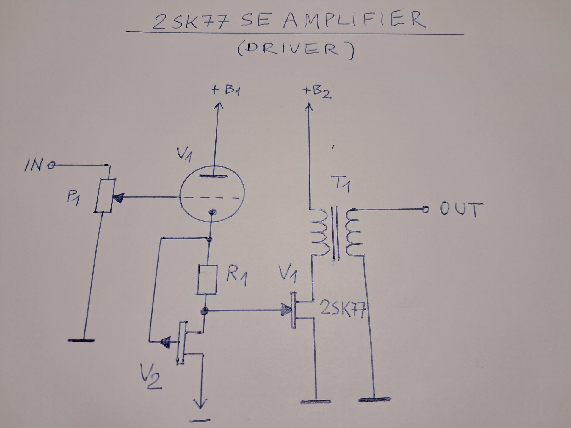 Az elvi működést mutató rajzon külön van +B1 és +B2, mivel az elektroncsőnek magasabb tápfeszültsége lesz, mint a 2SK77 V-FET-es kimenetnek.