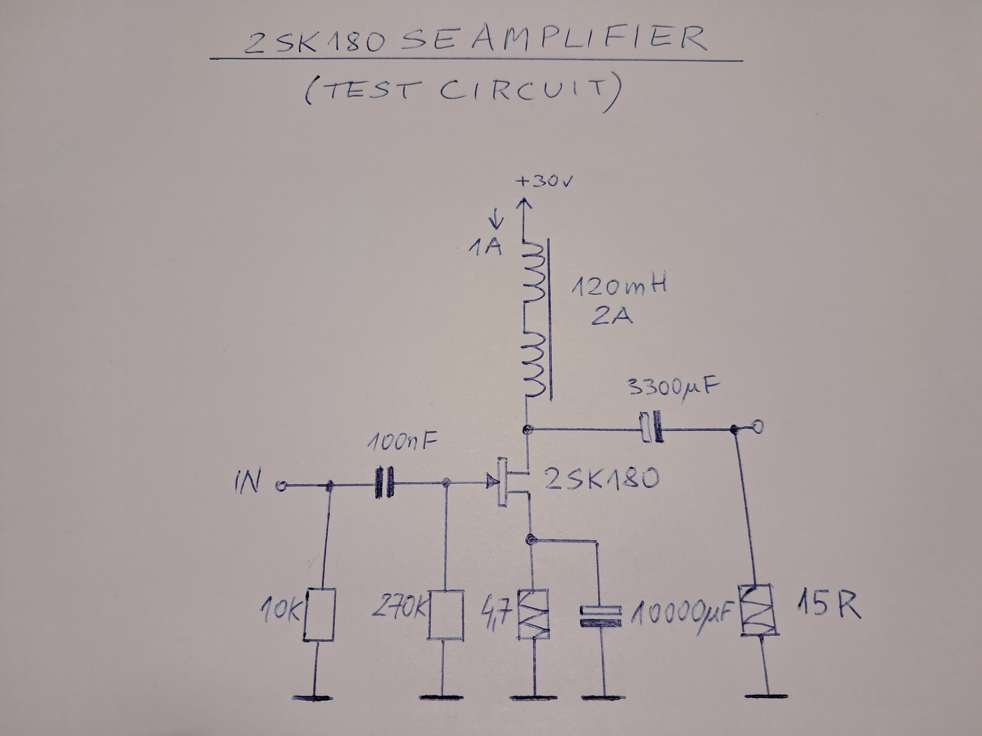 Mivel még nincs kimenőtrafóm a 2SK77 V-FET SE projekthez, elkezdtem kisérletezni a két tekercses 120mH/2A-es fojtóval. A korábbi Münchhausen drive V-FET SE erősítőben használt Unity Coupled SE elvét vettem elő...és következő elvi kapcsolást hoztam össze.