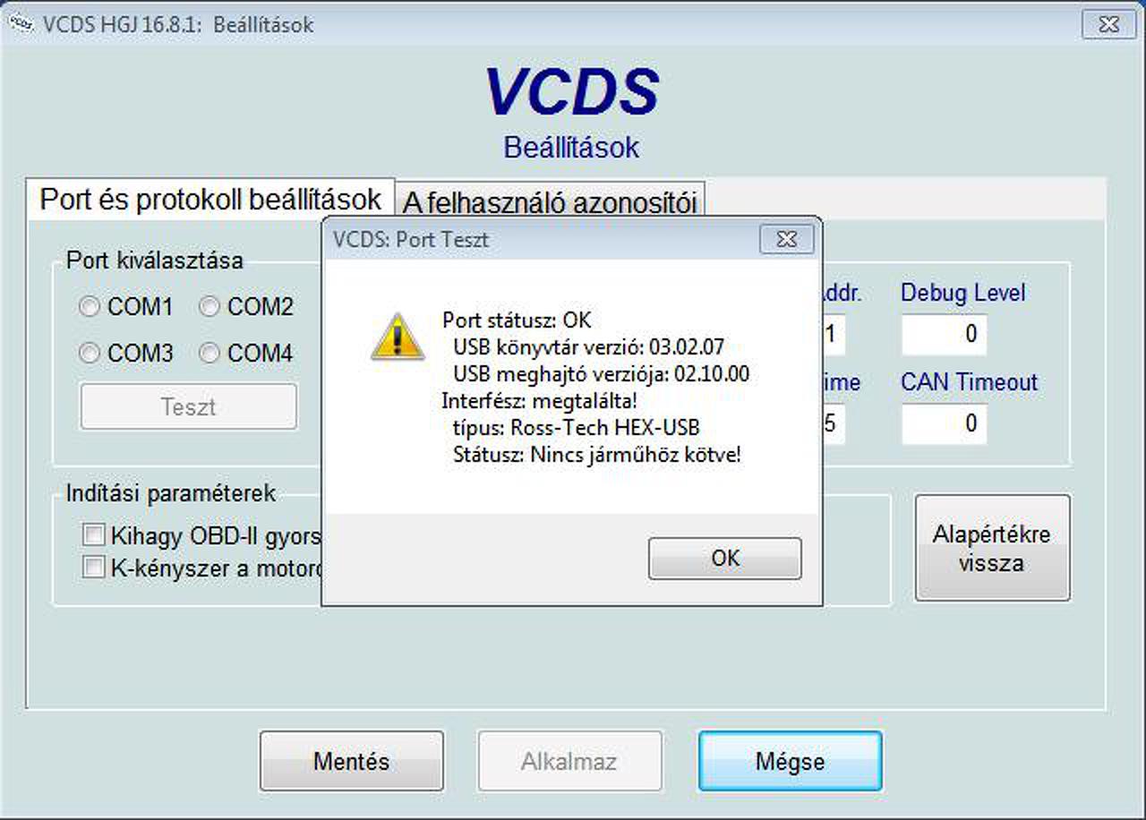 Látom elég régen nem történt hozzászólás,de azért megkérdezek valakit aki talán tudna segíteni. Van egy vag-com kábelem,amit kaptam,mert nem tudták mire való.Külföldön vásárolt autóban maradt. Csak annyit tudok róla,hogy fekete színű,és a win7 oprendszer Ross-Tech Direct USB Interface-nek ismeri fel. VCDS HGJ 16.8-as magyar nyelvű szoftverrel próbáltam a kábelt. Sajnos sikertelenül. A program megcsinálja a tesztet,de nem kapcsolódik az autóhoz. (golf IV) Ez az üzenet jelenik meg a teszt végén. Valakinek esetleg lenne ötlete,hogy mi lehet a hiba?Olvasgattam a fórumot,sok jó hasznos dolog ragadt meg bennem. Gondolkozok az Mprog 2.8-as program kipróbálásán,de mivel nem tudom hogy kell használni,nem merek nekifogni a kábel frissítésének,esetleg újra élesztésének. Feltéve ha az a baja. A segítséget előre is köszönöm! A hozzászólás módosítva: Okt 4, 2016