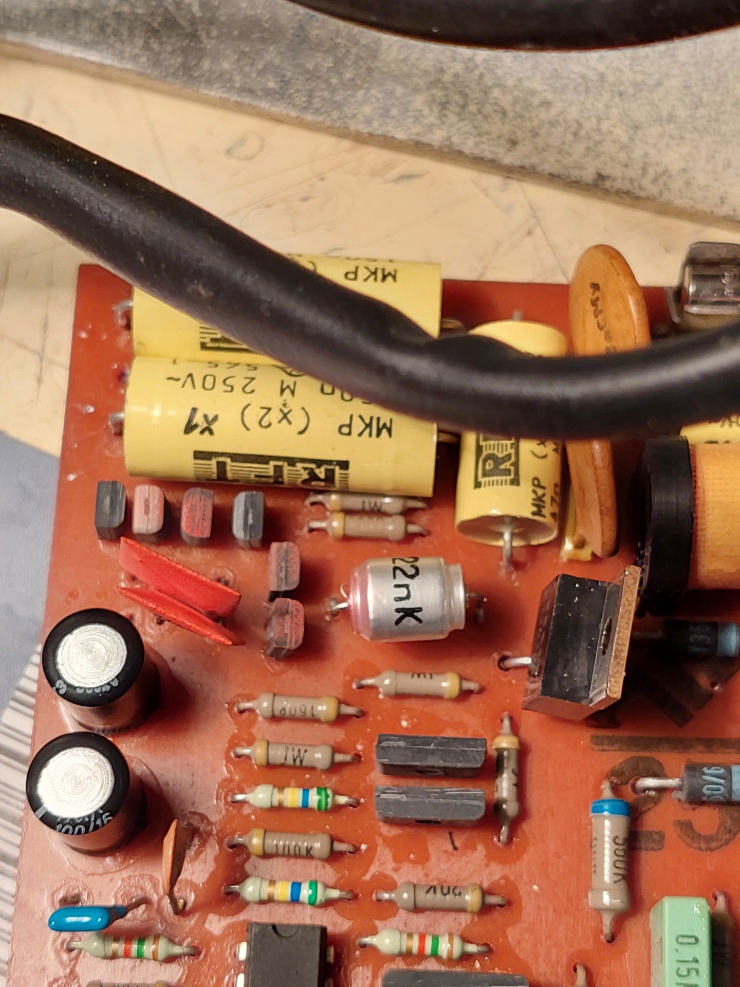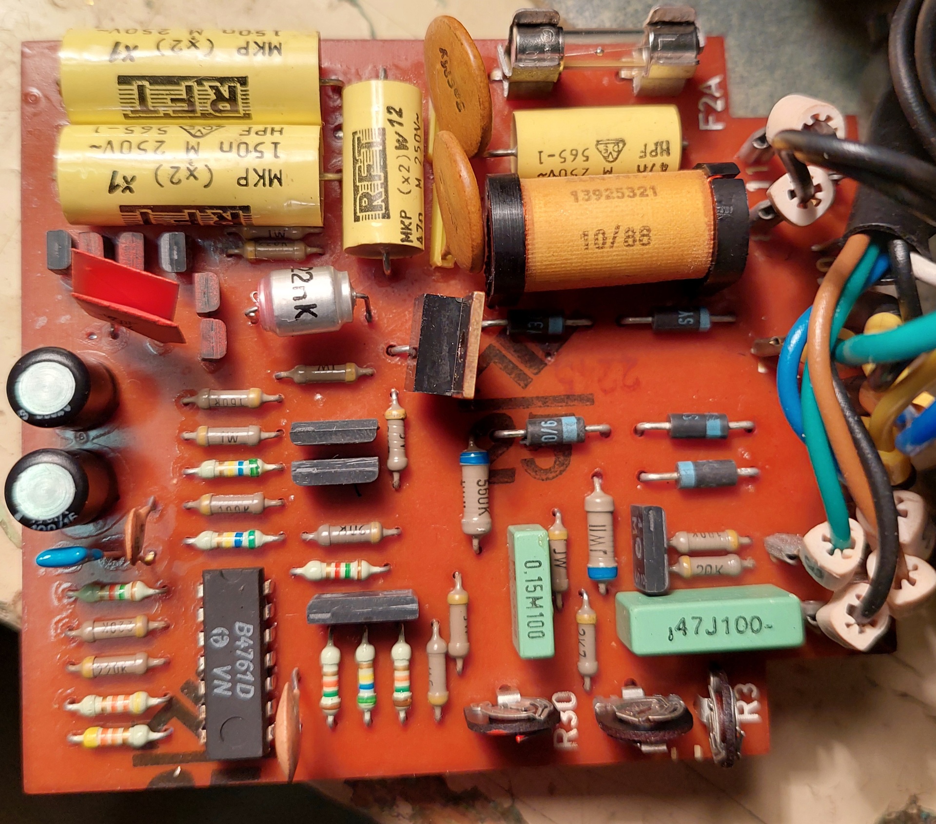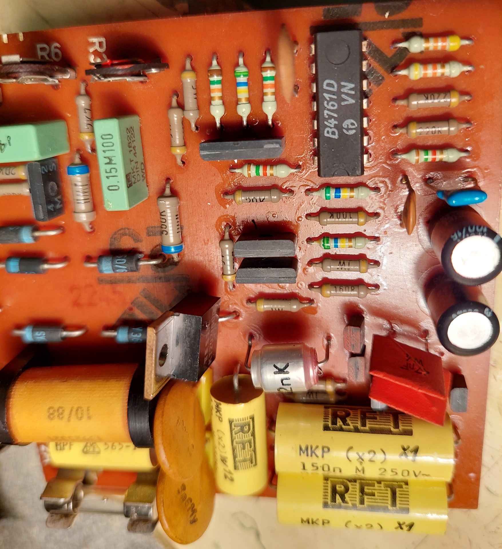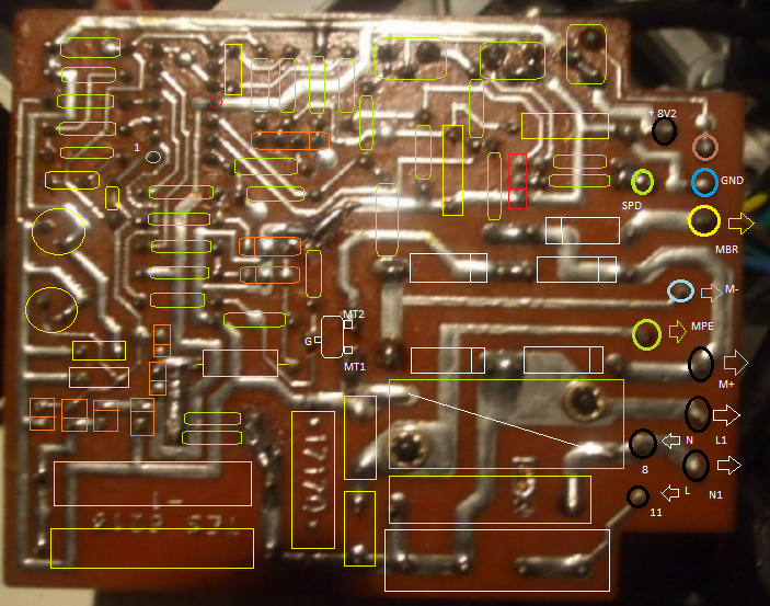 JÚgy hozta a sors, hogy beszélni tudtam Gabi bácsival akit mi ITT (de szerintem mindenhol) mindannyian nagyra becsülünk a páratlan tudása és sok egyéb más emberi tulajdonsága miatt is. Hát volt olyan kedves és képek alapján visszarajzolta az egész elektronikát. ... hát én sírva fakadtam. Nem akarom a szavakat szaporítani a történtekről de számomra zseniálisan lett megoldva, hogy felismerhető legyen (számomra) a főáramköri tápellátás és a motornak a vezérlése. Két különálló panelen van megoldva a fő és vezérlő áramkör. Ez utóbbin vannak a sebesség tolópotméter és a tű fent/tű lent gombok és ide csatlakozik a pedál is. A hiba a főáramköri panelen volt ahol az áteresztő kondenzátoros tápellátás pufferei voltak kiszáradva ill. az egyik zárlatos volt a másik fele értéket mutatott méréskor. Így a C3-C4 kondenzátorokat kicserélve nagyobb feszültségtűrésűre (mert ez okozza a kondenzátorok halálát, hogy azok a régi hálózati feszültségszabványhoz lettek méretezve és a minőségük sem időtálló) és "low ESR"-re a tápfeszültségek azonnal helyreálltak és a gép előírásszerűen kezdett működni.