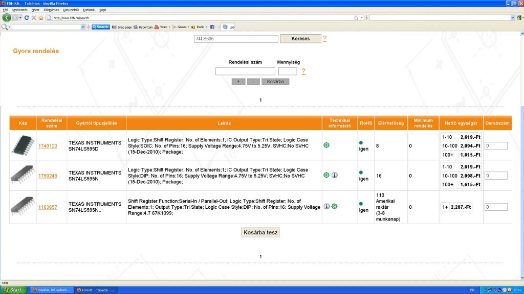 Szükségem lenne, 74LS595N típusú IC-re. Ez egy 8 bites shift regiszter. Hol tudok ilyet venni? (Ahol néztem: HESTORE, Lomex, Hqvideo) köszi.