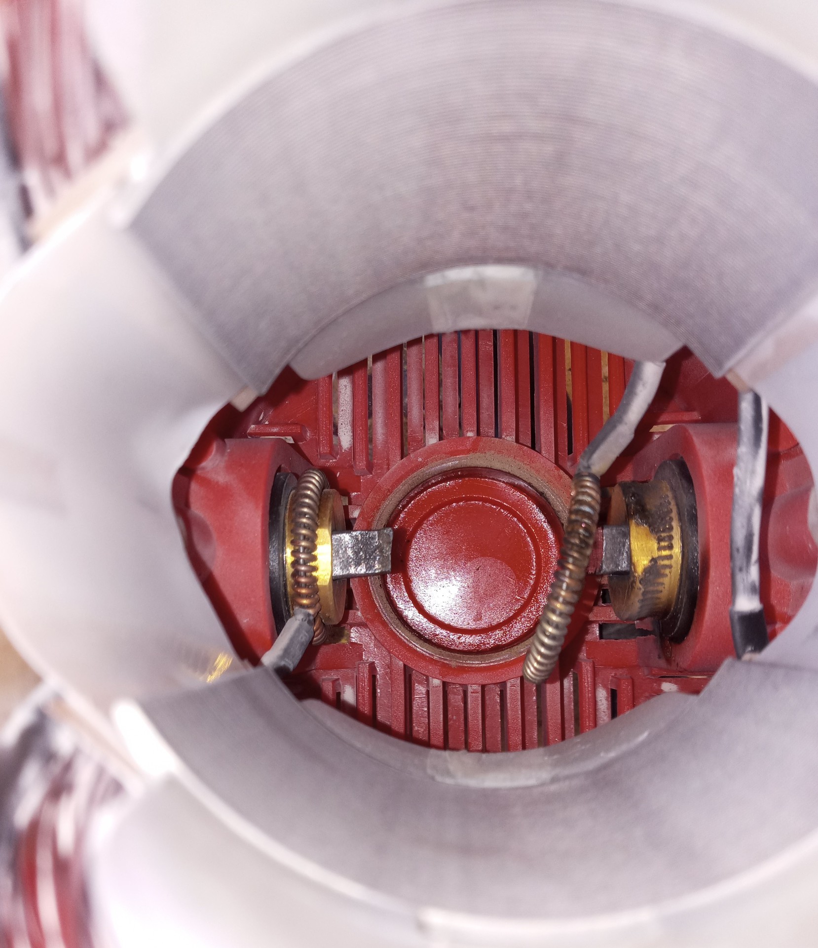 Igen, az a rugó veszi körbe a szénkefe tartót. Az szakadt el. Bár nem tudom hogy megbirom-e úgy forrasztani, hogy vissza erőltessem a helyére.