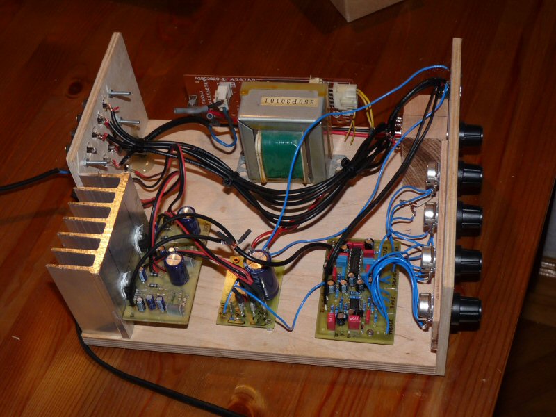 . Egyébként tudni kéne mekkora feszültséget akarsz erősíteni. Ahhoz tervezel egy fix erősítésű előfokot, vagy keresel a guglival. A kimenetre kötsz egy potmétert, annak a kimenetét meg a végfokra kötöd és kész.