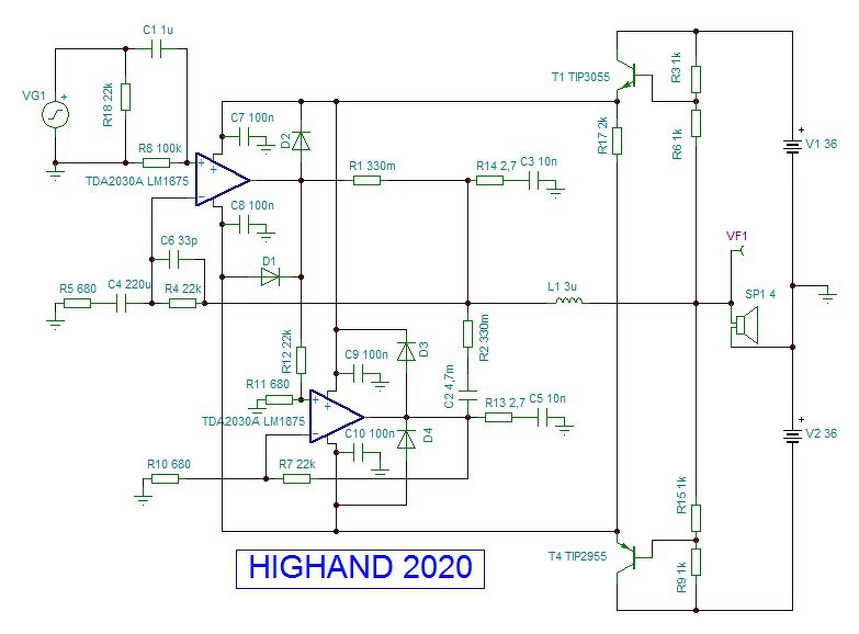 Az általam csak úttörő IC-nek nevezett gainclone két példánya ezúttal +- 36V-os tápfeszről több mint 100W teljesítményt szolgáltat - mégpedig a 20W-hoz tartozó specifikációval. Ezúttal nem híd, hanem sönt kapcsolást alkot a két IC. Az IC-k meghibásodásától nem kell tartani, mert működés közben végig 34V tápfeszültséget kapnak, amit R17 ellenálláson könnyűszerrel ellenőrizni lehet. Fentiektől eltekintve az áramkör a gyári beállításban működik, így nem gerjed és nem fog tönkre menni könnyen. A hangja 50-60W-ig sokkal jobb a vártnál, e felett ( csak a rövid csúcsokban) már hallatszik, hogy a védelme kezd belépni A hozzászólás módosítva: Szept 24, 2020