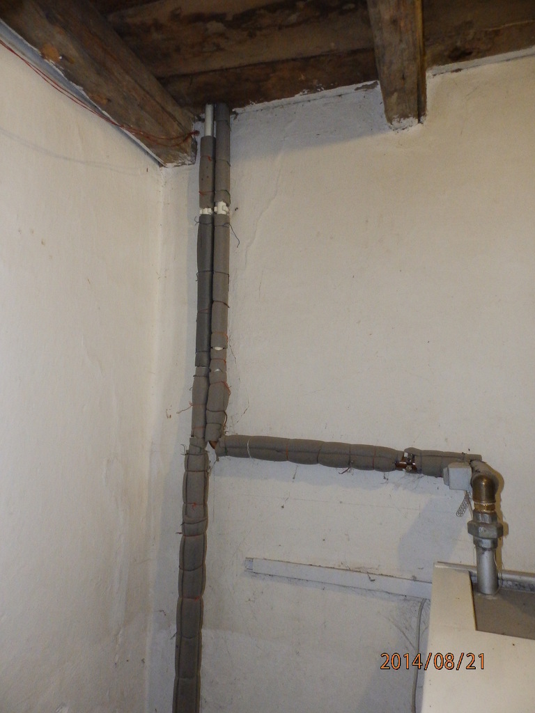 kolega is írja, ötrétegű csövet nem lehet közvetlenül a kazánhoz kötni.Ráadásul az előremenő csőnek kevés az átmérője (nincs szelektivitás,mint a vill. hálózatoknál),így csak nyöszörögve dolgozik a szivattyú.Rossz az áramlási viszony.Tetézi még (a képen is látható) maga a szivattyú. Úgy kell beszerelni,hogy a lapátja mindig függőlegesen forogjon (guglizz rá).Itt a képen nem úgy van.Tehát buborékokat termelhet idővel,ez pedig a kazánban megrekedhet.Azért is, mert a függőleges felszálló/előremenő vezeték nem rögtön egyenesen megy.Így az nem biztos,hogy kitud levegőzni.Ide kellene betenni egy automata légtelenítőt,de a szivattyú problémáján ez nem fog segíteni.De ez csak az én véleményem,és az is,hogy inkább keresni kellene egy jó szakembert hozzá mert ez így csak nyűglődés lesz nektek.