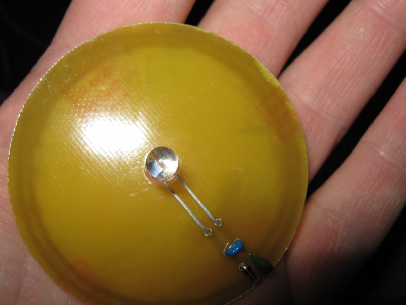 Sziasztok.Az én Wireless-ledem is kész lett,én 1 pohárba raktam amiböl iszogatni szoktam.Sajna romlott a hatásfok a ragasztó és a pohár vastagsága végett.Ja meg 1 kicsit alakitottam rajta ,hogy a zene ütemére villogjon.Telos felvétel boccs a minöségért.