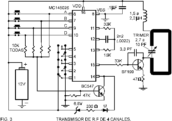 Azért írom mindezt, mert miközben próbálom megfejteni, milyen frekvencián és hogyan működik az RF-oldal, találtam egy spanyol weblapot (ha gondoljátok, felteszem tömörítve), amin volt két érdekes kép, a fenti chip és testvére, az MC145027 vevő (RET, 500 Ft) köré építve. Szerintem kiindulásnak jó lehet, illetve, ha valaki egy az egyben megépíti, akár megoldás is lehet a problémára.