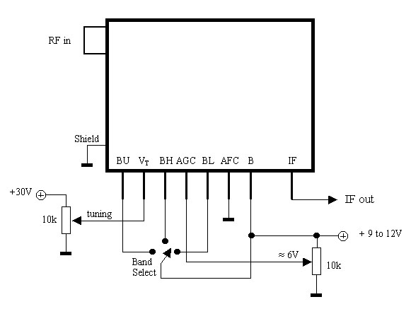 Ha jól értelmeztem azt, amit eddig összeolvastam, meg a meglévő tuneremben látok, akkor a BL, BH, Bu lábakkal választható ki rendre a tuner kis-, közép-, illetve magas frekvenciás sávja, a Vt lábon lévő feszültséggel ezen a sávon belül állítható a frekvencia, az AGC erősítést állít be (bejövő, vagy kimenő oldalit?), az AFC-n pedig finomhangolást lehetne még csinálni. Az MB pedig a +12V, gondolom.