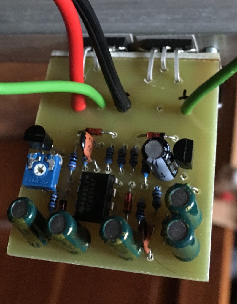 Igen ez az. Annyit módosítottam, hogy a pici panelre csináltam. Azon a 3,3k és a poti + 2,7k fel van cserélve, tehát az ellenállás és a poti van felül. Ebből élesztéskor volt kavar, mert a honlapon azt írták legnagyobb állásba kell tekerni, de mivel meg van cserélve így a potit a legkisebb állásba kell tekerni. De szerencsére a táppal sorbakötött 33ohm megvédte. Ezután gond nélkül ment az élesztés.