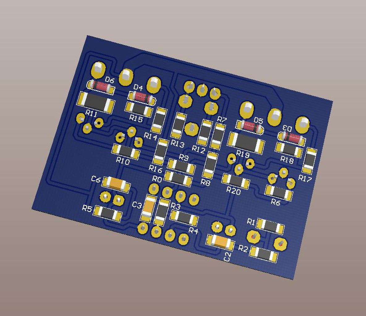 Pár héttel ezelőtt rátaláltam Király Tibor oldalára és a VF2-es erősítőre. Aztán tovább keresgéltem és eljutottam erre a fórumra. Elég sok hozzászólást végigolvastam, közben jó néhány rajzot és egyéb infót lementettem, mert úgy döntöttem, hogy nekilátok egy VF2 conductor megépítésének. Korábban összeraktam pár Quad 405-öst és néhány A-osztályú végfokot is, de egyáltalán nem tartom magam megfelelően hozzáértőnek a témában. Remélem, hogy kapok némi segítséget és egy-két tanácsot az építéssel kapcsolatban, annak viszont kifejezetten örülnék, ha én is tudnék valami adni pluszt. A hozzászólások alapján úgy gondolom, hogy a 4ohmos hangfalaimhoz egy kb. 30-35V-os tápfeszű, IRFP240/9240 fetekkel szerelt változat lenne jó. A következő kérdések merültek fel bennem: 1. Jó-e a 4ohm/30-35V/IRFP240/9240 alapelképzelésem? 2. Mennyire érzékeny a kapcsolás a nyáktervre? 3. Szóba jöhetnek-e túlnyomórészt SMD alkatrészek? 4. Az ellenállásoknál mennyire számít a teljesítmény? (Az R11 és R19 ellenállások 2010-esek, az összes többi SMD alkatrész pedig 1206-os.) Készítettem egy még nem végleges, jelenleg 49x36mm méretű nyáktervet (az alkatrészeket még némileg mozgatni kell, mert egyelőre nincsenek rajta a nyákon a ki- és bemenetek, valamint a tápcsatlakozások), és szeretném kikérni a hozzáértők véleményét, hogy jó irányba megyek-e, esetleg min kellene mindenképpen változtatnom, vagy felejtsem el az áttervezést. Az alsó réteg mindenképpen telifóliás lenne, de ha szükséges, akkor a felső is az lehet. A terv az Alkotó-féle rajzolat pozíciószámainak megfelelően készült. Az R0 jelű "ellenállás" az egyetlen átkötés a panelon. Várom a véleményeket! Üdv! A hozzászólás módosítva: Szept 17, 2016
