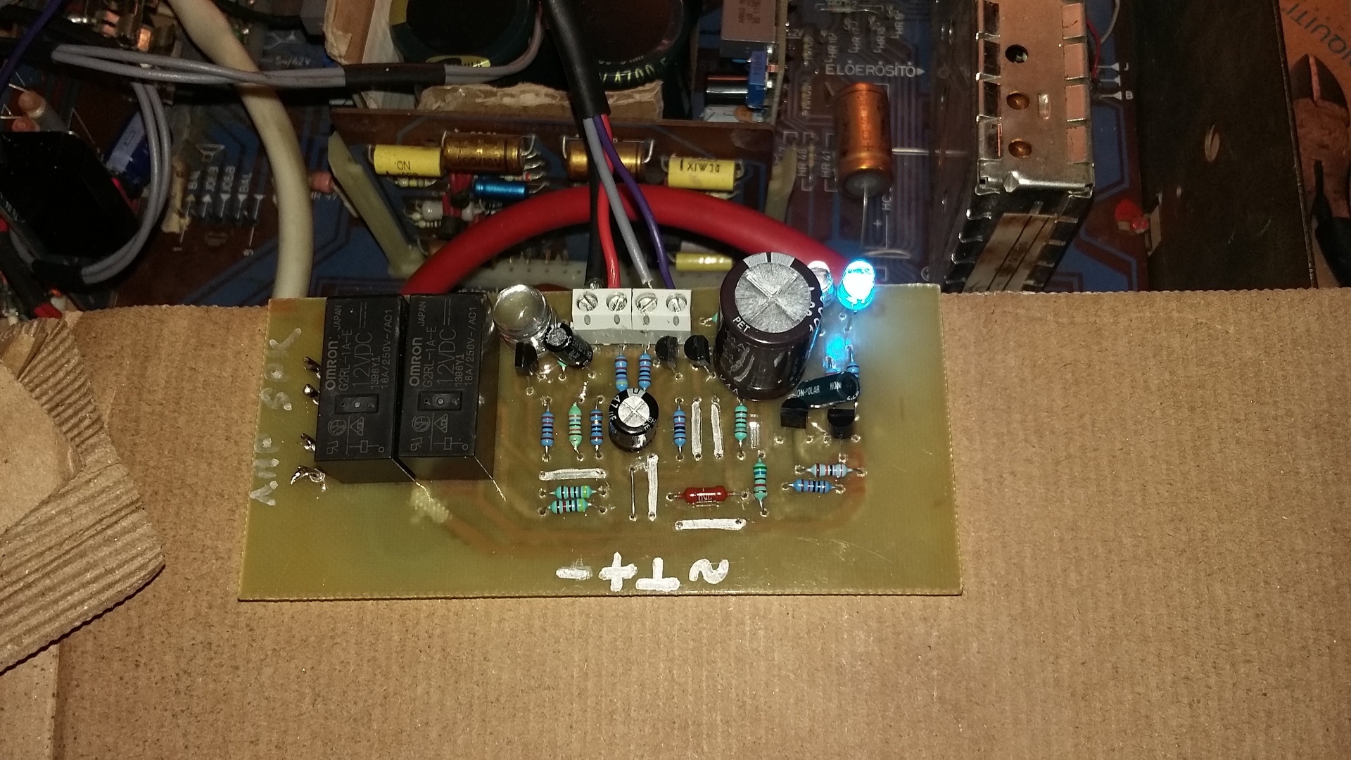 Elkészült a relés hangszóróvédelem modul is a VF2 projekthez. Nem volt könnyű helyet találni neki, de megoldottam.