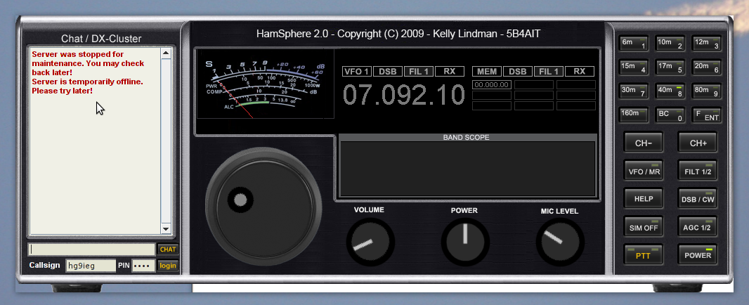 Nos, pont az a lényeg, hogy ez szimuláció. Nincs rádió, nincs antenna, nincs ionoszféra, nincs terjedés. Illetve addig van terjedés, amíg a szolgáltató ( server ) működik. És most az éppen nem. Na, ezért is jobb a rádió...