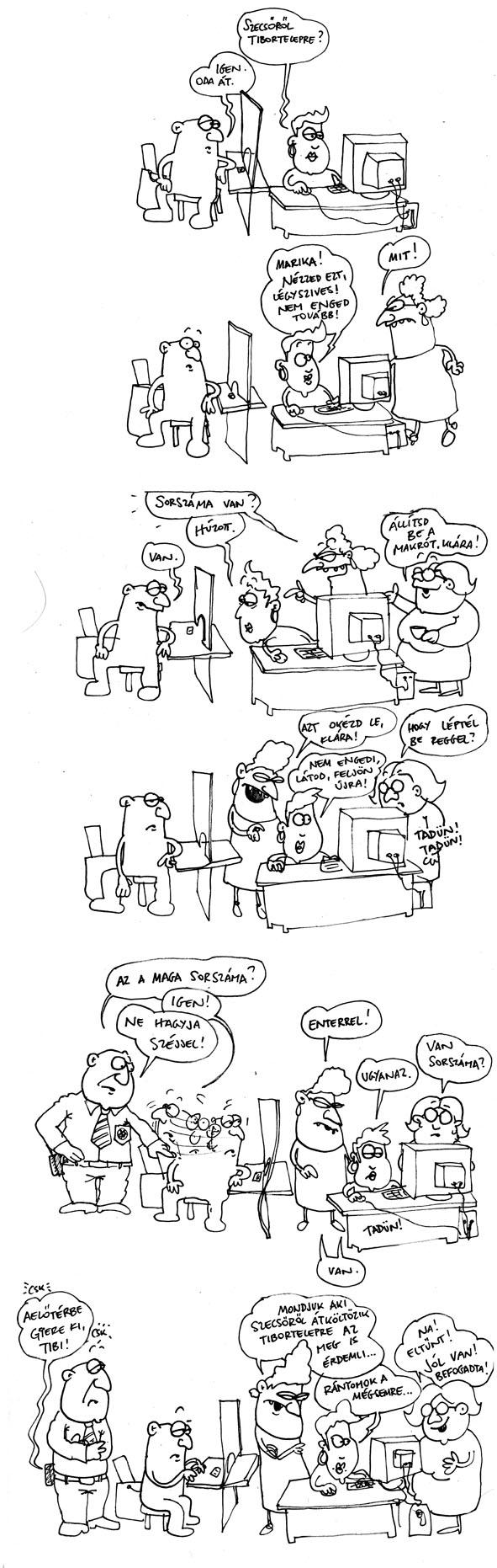 A 90-s évek elején a hódmezővásárhelyi Kossuth Zs. Szki.-ban tanultam elektronikai műszerésznek.Az egyik gyakorlati órán egy két reléből álló öntartós kapcsolást kellett megvalósítani,behuzalozni,majd a vezetékeket leszabva vezetékköteget készíteni,újra bekötni,majd bemutatni.Nos,én kicsit félreértelmezve a kapcsolást nem tudtam működőképessé tenni,ennek ellenére megcsináltam a vezetékköteget,bekötöttem...nem működik...grrr.Az Tanár úr egy óra hibakeresés után megkérdezte,hogy adjon e valamit,amit megtaposhatok a sarokba.Utána ő jött,hogy kibogozza,neki sem sikerült.Kiegyeztünk egy 3-asba.Szerintem korrekt volt.