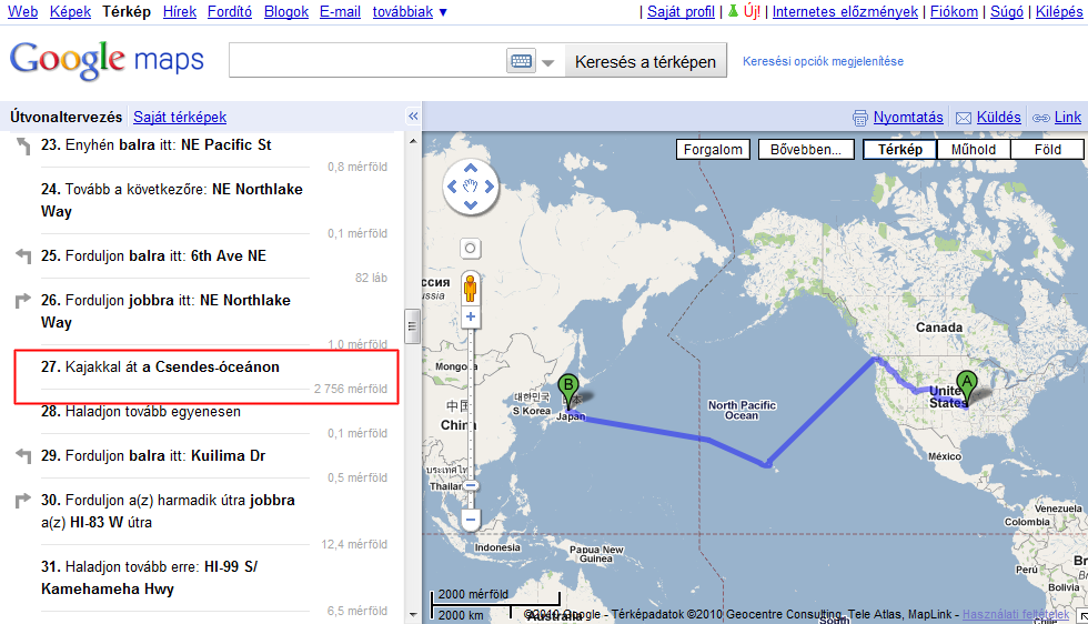 Még egy: Kiindulás:USA Cél:Japán, Keresd a 27-es lépést!