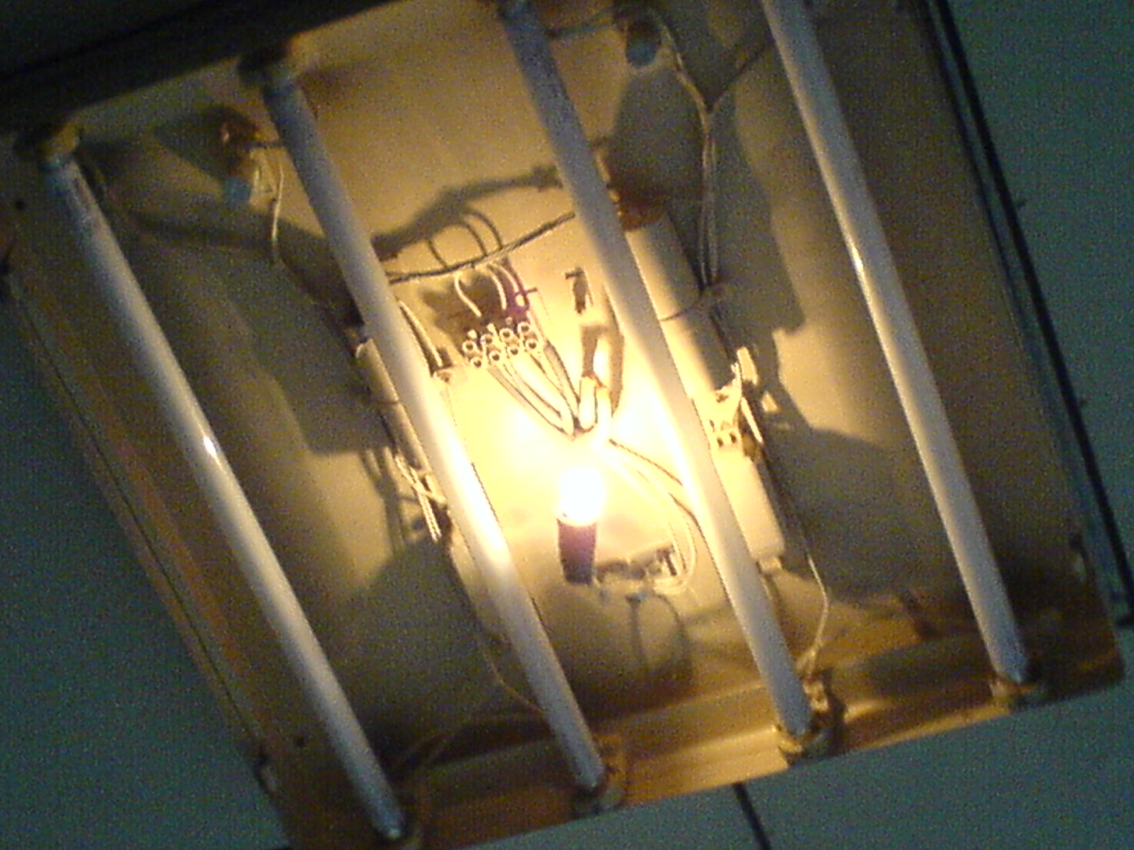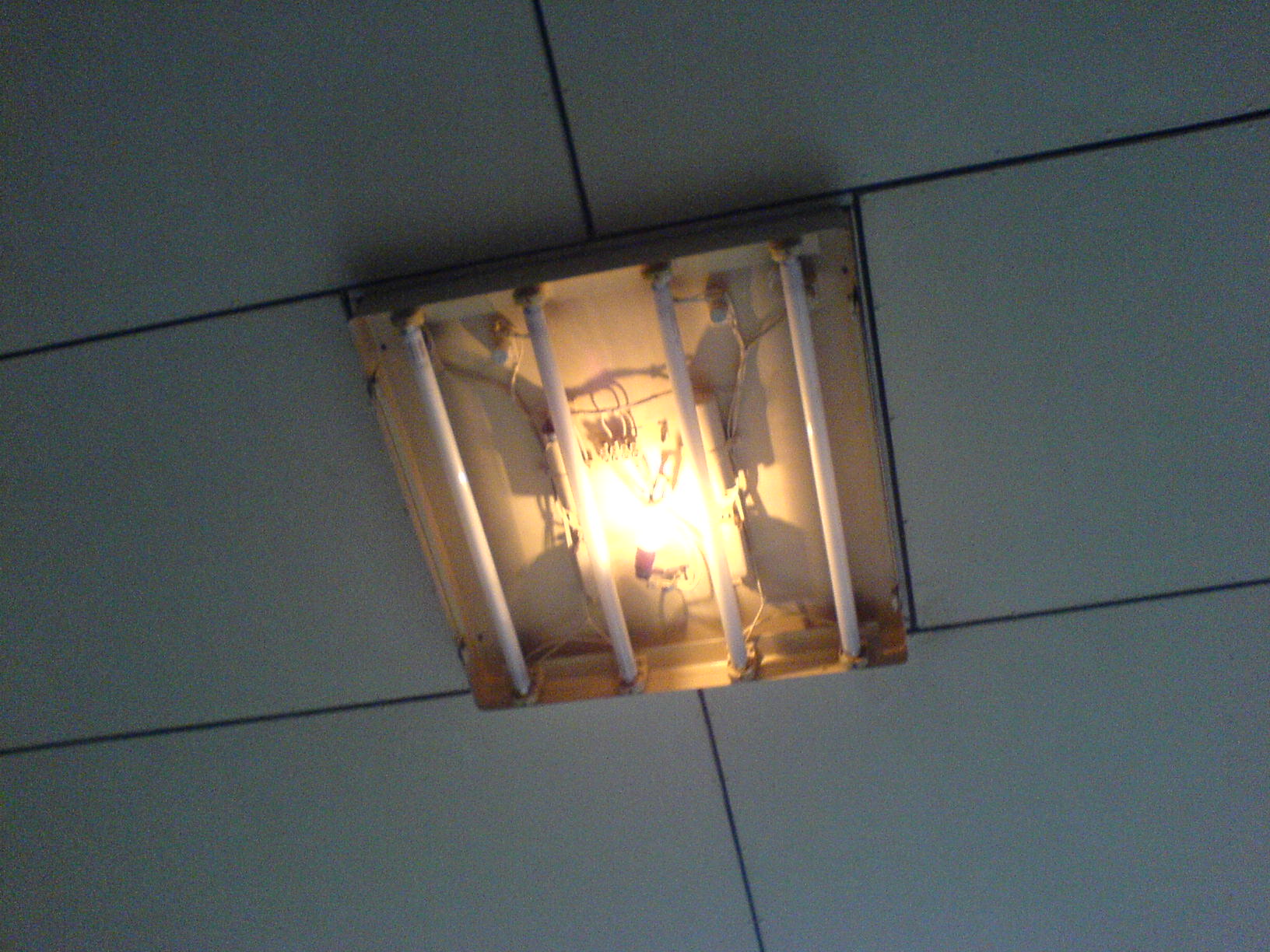 Aminap kicsiny országunk egyik egyetemének (nem emítem név szerint) épületében sétálva láttam meg eme ékes példáját az emberi találékonyságnak:A folyosót megvilágító neonlámpák egyik tagja nem világított már egy hete, de a karbantartók - bizonyítván, hogy nekik se káposztalé lötyög a fejükben - kitaláltak egy módot, hogyan pótolhatnák a neoncsöveket. A képek minőségéért elnézést kérek, de csak teló volt nálam. :nemtudom: