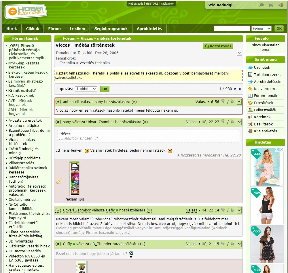 Mivel tudom, hogy a HE-nek fontos, hogy ott legyen a reklám, nekem meg fontos a HE, ezért néha rá is kattintok az oldalt lévő dolgokra...