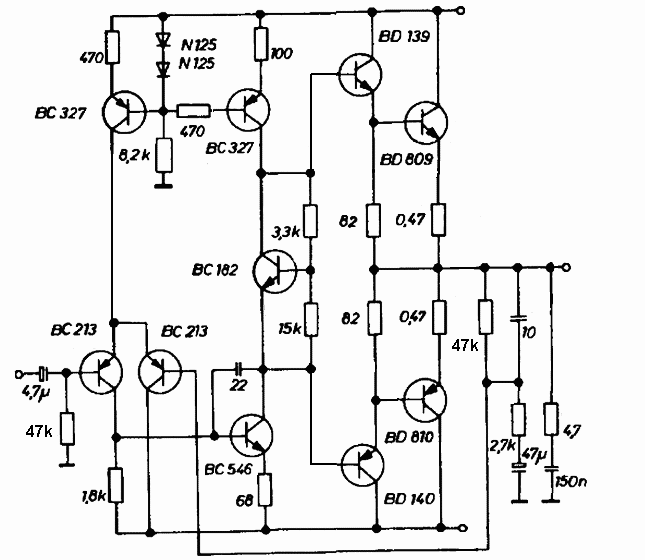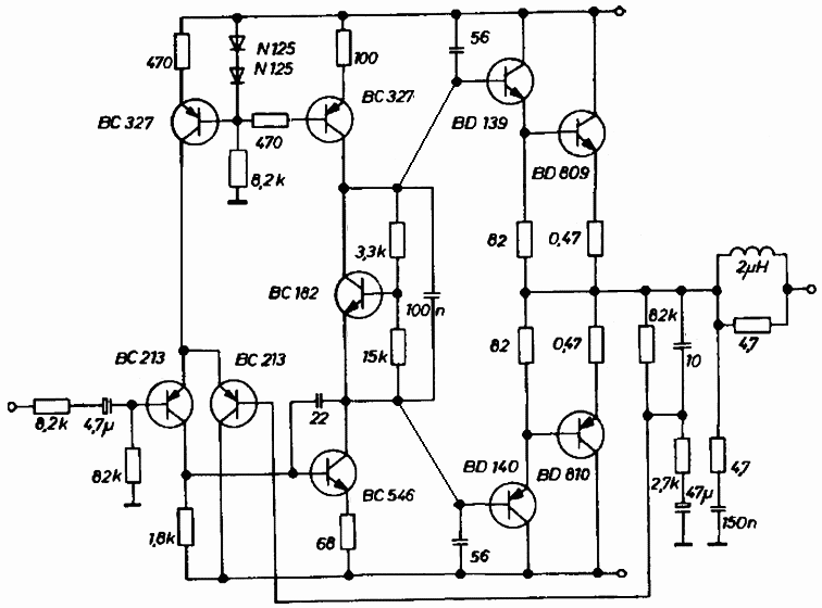 Leradíroztam a végfokról a némítást és a rövidzárvédelmet, meg a számomra zavaró sallangokat, + átrajzoltam a végtranyókat a helyükre. Megnézné valaki hogy jó-e így ? Illetve jól látom hogy ez egy darlington kimenet valójában ? Nem lehetne valami mai jófajta darlington tranyókat betenni a bd139/140-bd809/810 helyett ? Hátha jobb lenne.