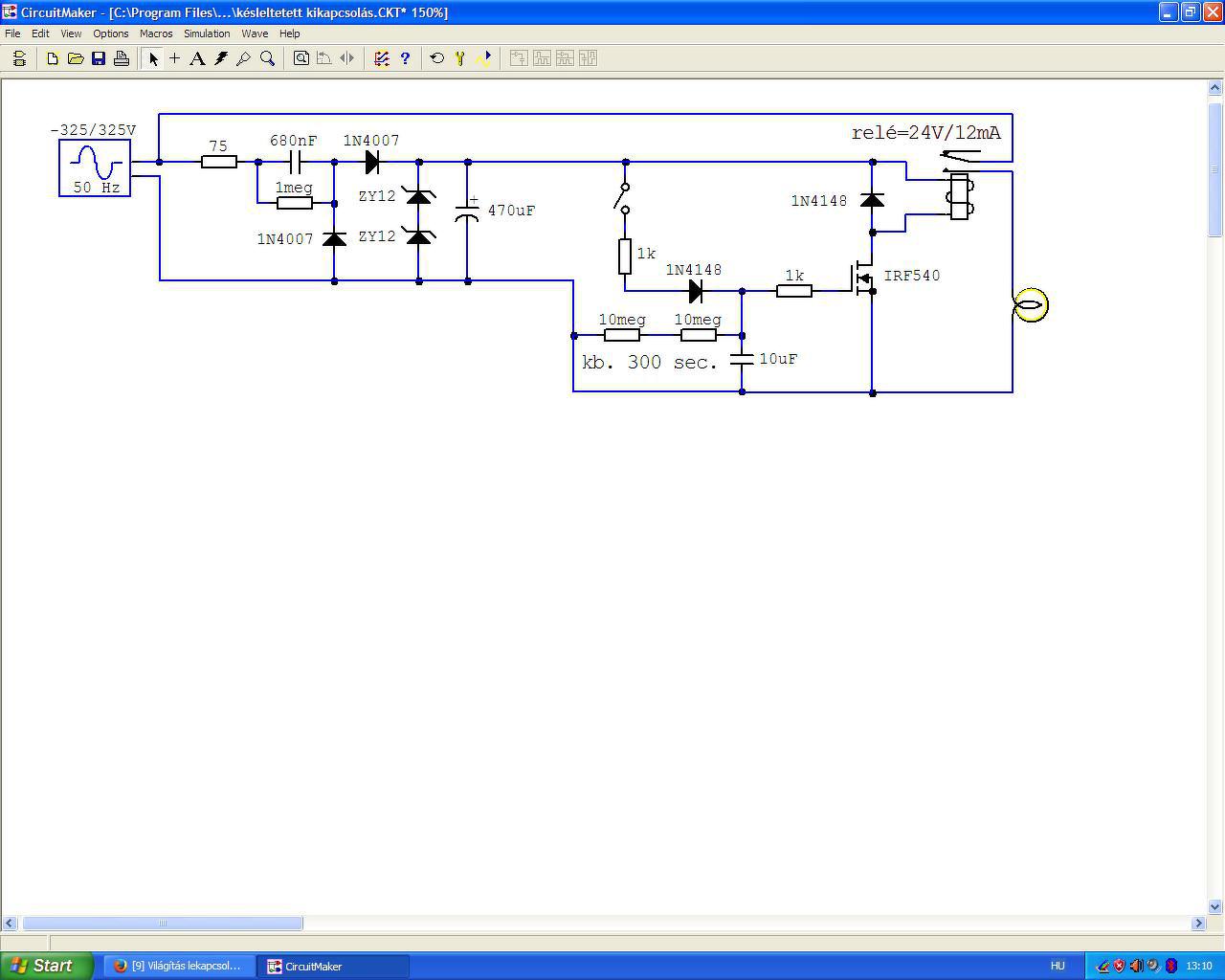 Ez ha jól tudom egy impulzus után, bizonyos beállított idő múlva kapcsolja le a fogyasztót. Nekem az kellene, ha a kapcsolóval lekapcsolom a lámpát, akkor az még világítson egy kis ideig.