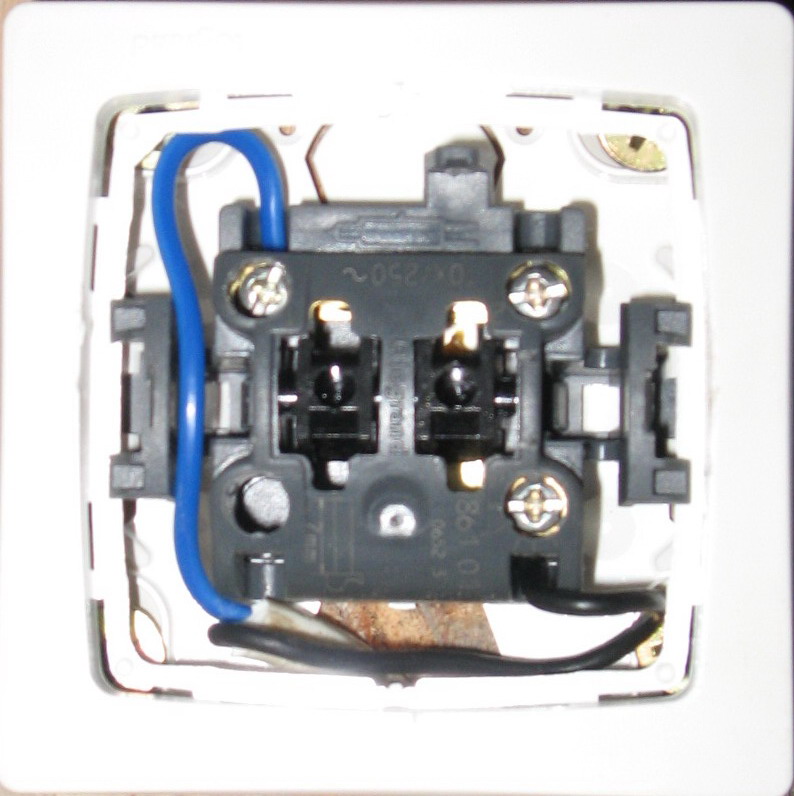 A kapcsoló a fázisba van kötve. Egy darab foglalatban van egy db 60W-os körteizzó.