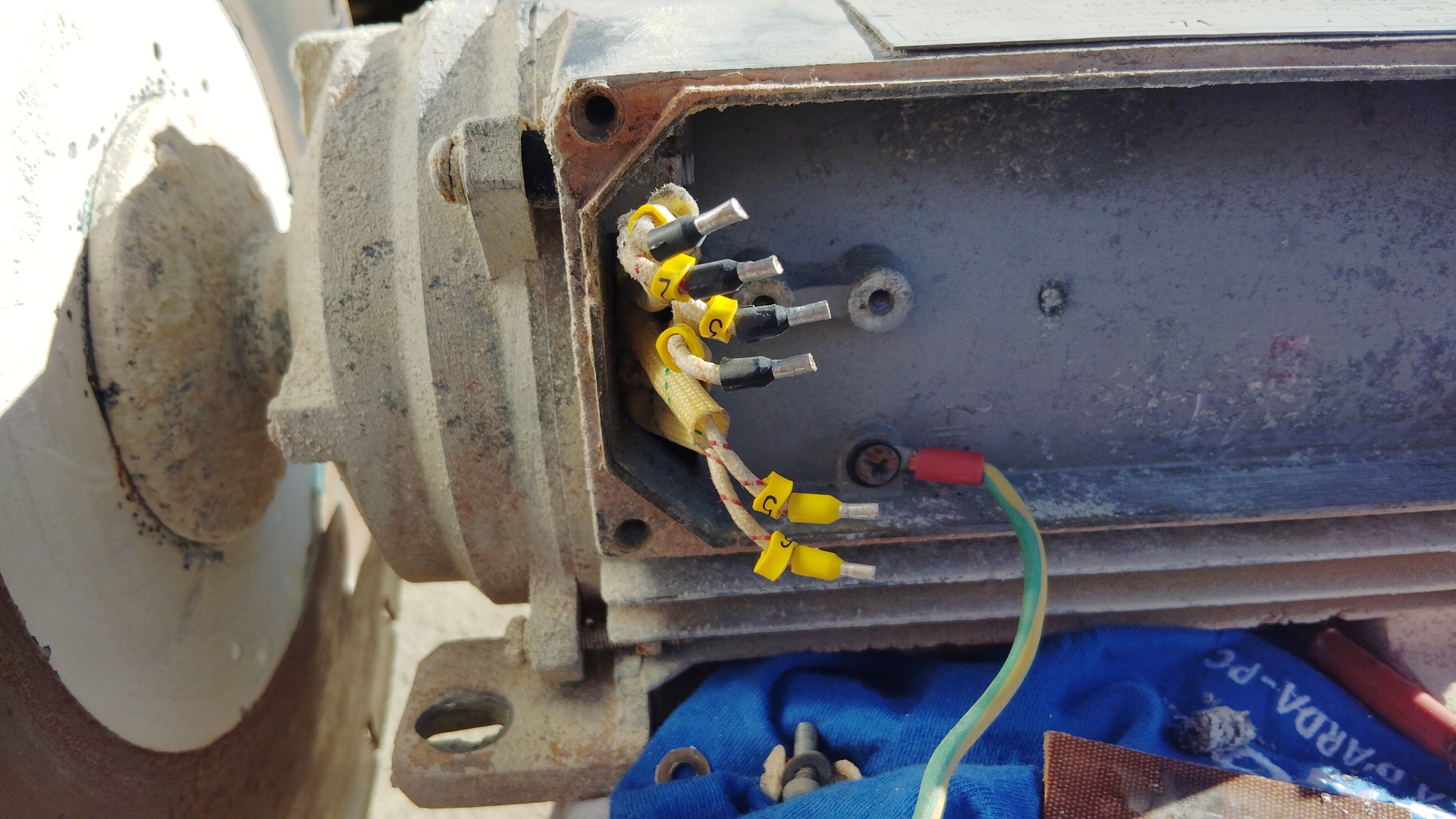 Ki kéne deríteni hogy nem tekercselték e át, mert adatlap szerint ez egy delta 380V-os motor amiknél nem szokták kihozni a 6 tekercsvéget. Ha gyárilag kihozták volna akkor jó eséllyel fel lenne tüntetve a csillaghoz tartozó 690V is. Gyanús hogy át van tekercselve 400/230V-s csillag deltának. Főleg ha most csillagban működik 3 fázisról.