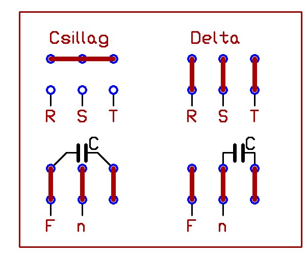 A villanymotor igen valóban deltába kötve van a kép becsapós volt. A villanymotor akármilyen öreg normálisan lett elékszítve a kábelezés és kiderült azzal nincs probléma (Találtam a háznak egy viszonylag normális feldelésű konektorát) Fázisceruzával megnéztem melyik a fázis,biztonság kedvéért a másik két pontra is ránéztem) Ez kimérve Fázis-Null 230V Rámérve Fázis-Föld 230V és végül null-Védőföld 0V Ezzel ha jól tudom így is kell lennie A motor mérésénél jól becsapott az hogy a villanymotor bekötési pontjánál és a fémháznál párhuzamosan mérve a feszültséget konrántsem mindegy hogy barna színre köttöttem az egyik aljzati tüskét(ezt fázisnak tituláltam) a jobb oldalira meg a null kék szín) Ez így okés is de amikor bedugva a konnektorba az aljzatot nem a fázis a fázisal és null a nullával nézett szembe hanem "fázis"-null és null-fázis így a szín becsapott Így még1x átgondolva valóban a villanymotort helyesen kimérve Fázis-0 között ott is 230V Fázis és a motor testje között 230V És null-test között 0V Szóval a szín végett és aljazotk csatlakozása végett valóban mikor a 0-ra hittem 230-at az volt a fázis ,csak becsapott a belémrögződött kék=0 barna=fázis