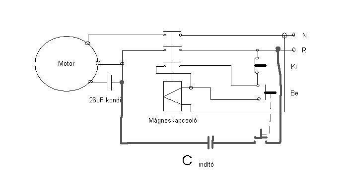 Rendben akkor majd kikísérletezgetem, és akkor az indítókondi jó úgy ahogyan mondtam azaz úgy mint ahogyan a rajzon van, csak az üzemi kondi másik felére az elmenőt..?