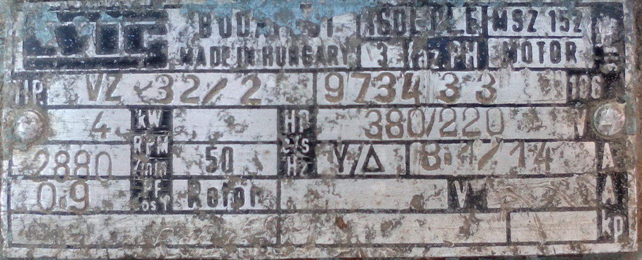 Ez egy régi IMI motor. Ez a típus terménydarálókon volt. 500W körüli a teljesítménye. Kondenzátor nem kell rá!!! Nyomógombon kap egy pillanatra áramot a segédfázis, és már jár is a motor.